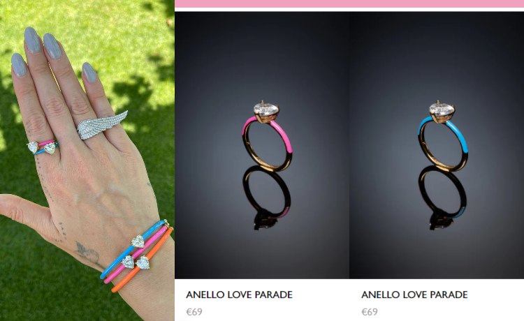 Un vero vulcano dunque anche nel campo della moda, non solo come ispiratrice di tendenze ma anche come produttrice. Il Chiara Ferragni Brand è amatissimo ma, probabilmente, vi è capitato di vedere i suoi prodotti di punta indossati da lei senza però osare chiedervi quanto costano. In questa estate scorrendo tra i suoi post è facile notare come la moglie di Fedez indossi sulle sue belle mani tatuate gli anelli colorati della sua linea LOVE PARADE.