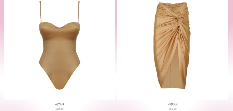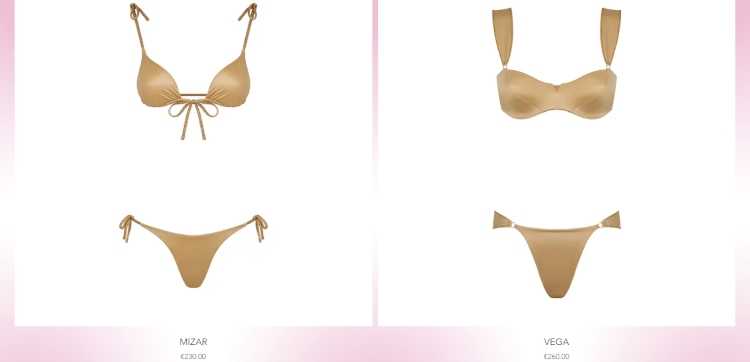 Il tutto si ripete nei colori oro, nero e bianco con dei prezzi che non sono però proprio accessibili alle tasche di tutti. Vediamoli qui nel dettaglio. 230 euro e 260 euro rispettivamente per i bikini a triangolo e a balconcino. Il modello intero dalla sagomatura statuaria costa invece 240 euro. Per chi volesse completare il look in pieno stile Viky Varga non rimane che aggiungere il pareo, dal costo di 170 euro.