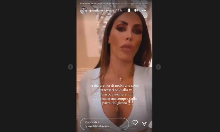 “A differenza di molti che sono interessati solo alla tv, preferisco rimanere nell’anonimato ma sempre nella parte del giusto!!“, ha scritto la Tavassi nelle sue stories senza dare troppe spiegazioni sulla sua assenza dell’ultimo minuto. Dopo qualche ora però, quando la rabbia è passata, Guendalina si è lasciata andare con i follower raccontando le sue emozioni.