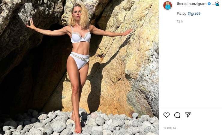 Nel primo scatto del post pubblicato ieri sera sul suo profilo Instagram la bellissima conduttrice si mette in posa tra le rocce e si lascia ammirare in tutto il suo incredibile splendore. I suoi tantissimi fan non riuscivano più a toglierle gli occhi di dosso, è un vero spettacolo.