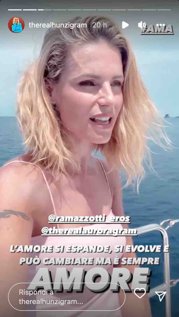 Sulle sue Instagram stories, Michelle ha raccontato qualche retroscena sul nuovo videoclip della canzone ‘Ama‘ di Eros Ramazzotti (a cui hanno partecipato sia la Hunziker sia la loro figlia Aurora). I fans sono rimasti senza parole nel vederle (a sorpresa) in quel filmato, e la soubrette ha così voluto raccontare qualche aneddoto.