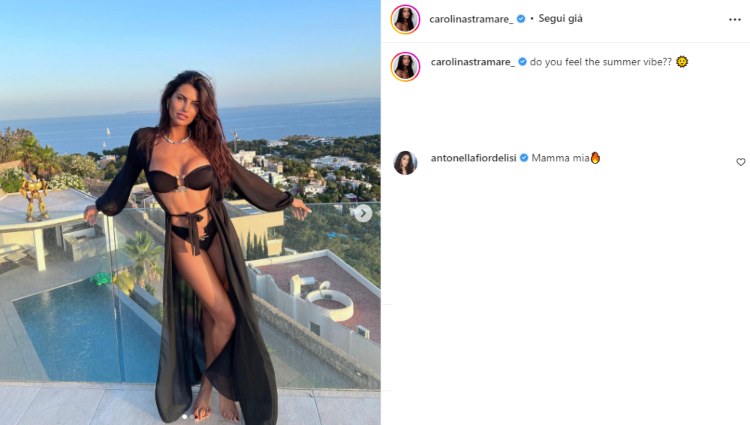 Vibrazioni estive per Carolina Stramare che conquista i social con il suo ultimo post: bellezza incantevole ed eleganza smisurata in bikini nero.