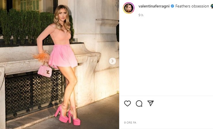 Anche ieri sera ha fatto girare la testa a tutti, a Parigi indossa un outfit pazzesco che ha ipnotizzato i suoi affezionati fan. Nella didascalia del post scrive ‘ossessione per le piume’, queste infatti arricchiscono la trasparente e aderente maglia che indossa. La gonna è davvero cortissima e mette in bella mostra le sue favolose gambe, i suoi tantissimi follower non hanno potuto fare a meno di ammirare le sue forme da sogno. Valentina Ferragni è stupenda e come al solito ha ammaliato il web, i suoi seguaci non riuscivano più a toglierle gli occhi di dosso.