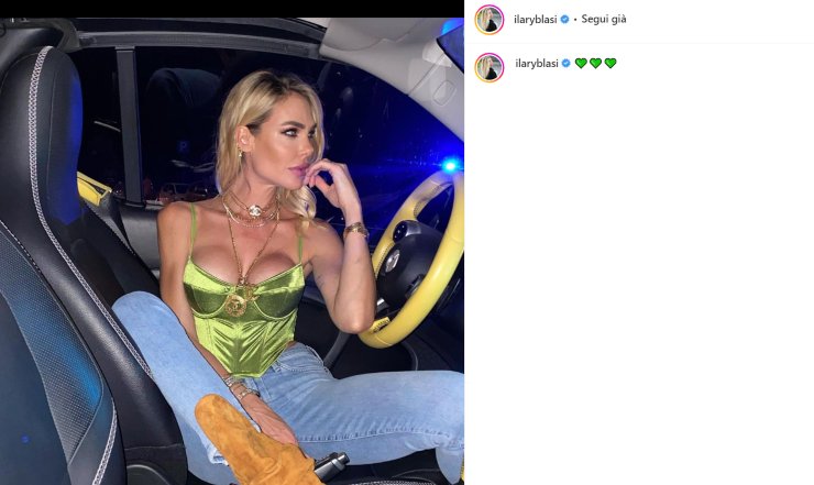 Con un look da vera diva, ha affascinato il web intero scatenando un entusiasmo generale: Ilary ha condiviso uno scatto in cui si mostra seduta in auto. Addosso un top bustier rigido verde che evidenzia alla perfezione un decolleté a dir poco straripante, mentre la comodità si coniuga alla perfezione con un jeans morbido celeste. Gioielli dorati impreziosiscono il corpo, mentre lo sguardo è rivolto altrove e i capelli acconciati in morbide onde dorate.