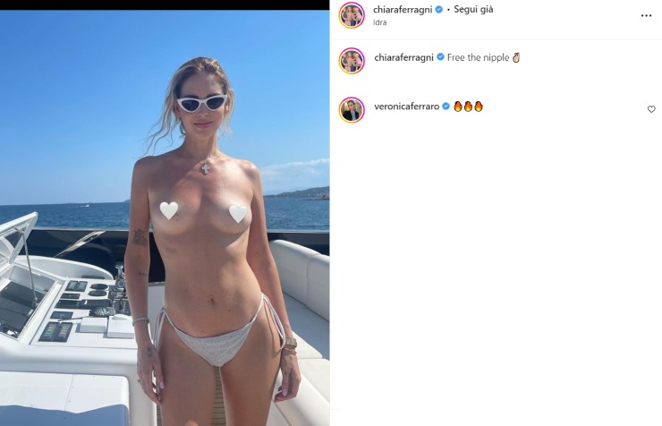 Per Chiara Ferragni è tempo di libertà, l’influencer porta avanti la campagna “Free the nipple” in barca mostrandosi in un topless favoloso, il post scatena il delirio dei fan.