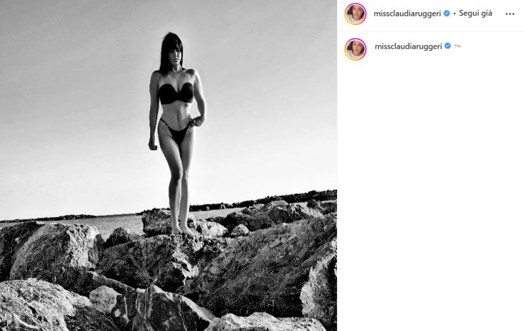 Oggi, se possibile, la showgirl ha lasciato ancora più incantati i fan con una bellissima foto che la ritrae in bianco e nero, in cima ad alcuni scogli come una perfetta sirenetta. Questa volta Claudia sfoggia un fisico strepitoso indossando un bikini nero da favola, composto da un abbondante top che sostiene il decolleté formoso ed uno slip sgambatissimo. Come d’abitudine per lei si genera tantissimo entusiasmo, espresso dai follower attraverso commenti e like. Ecco allora che qualcuno la definisce “Statuaria“, “Bellissima“, “Uno spettacolo” e non si può che essere d’accordo con loro.