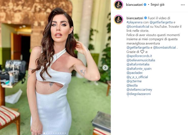 Dotata di un’estrema bellezza, in questo periodo Bianca Atzei sembra esserlo ancora di più. Merito forse proprio della gravidanza appena iniziata, perché nelle ultime ore l’artista ha entusiasmato i fan con un suo bollente nuovo post su Instagram. Nella sua seguitissima pagina social la compagna di Stefano Corti ha condiviso un ricchissimo album che annuncia il nuovo video di Playa Nera, disponibile attualmente su Youtube.