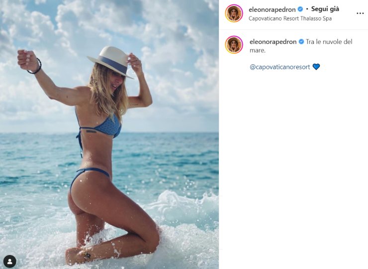 Lasciandoci incantare dalle sue pubblicazioni, scopriamo che negli ultimi giorni, la bellissima Eleonora Pedron sta trascorrendo le sue vacanze in un resort della Calabria. Tra mare e passeggiate nella natura, la meravigliosa ex Miss Italia si mostra più brillante che mai, illuminando l’estate con i suoi outfit coloratissimi. Naturalmente, c’è spazio anche per un tuffo in costume e, nelle ultime ore, è proprio così che ha attirato l’attenzione.