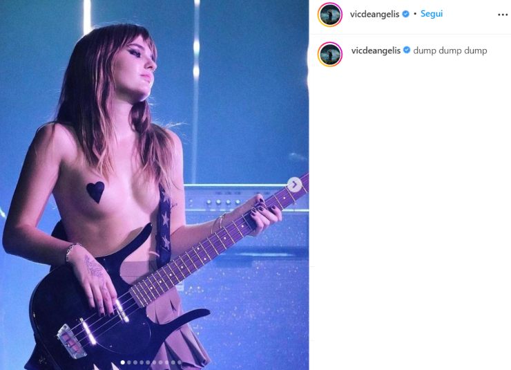 Victoria De Angelis lascia ancora una volta i fan senza fiato con il suo ultimo post su Instagram in cui mostra il look del live: solo cuoricini neri a coprire quei punti, topless favoloso.