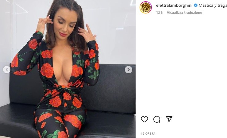 Elettra Lamborghini indossa una tuta intera tutta piena di rose rosse, questa è super attillata e segna perfettamente le sue forme da sballo. Anche la scollatura fa sognare, questa infatti è profondissima e lascia intravedere gran parte del suo esplosivo décolleté. Inutile dire che l’occhio dei suoi tantissimi e affezionati follower è caduto subito lì, davanti alle sue curve da paura e alla sua sensualità sono impazziti.