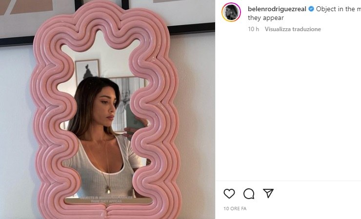Davanti allo specchio Belen Rodriguez si scatta un selfie ed è bella da togliere il fiato, la maglia è scollata e ciò che si intravede manda il web in tilt