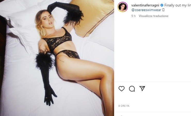 Valentina Ferragni in intimo ipnotizza i fan, sdraiata sul letto è un vero spettacolo