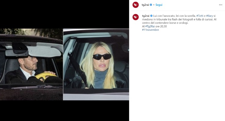 Si è svolta venerdì 11 novembre la seconda “manche” della battaglia legale, con l’udienza che ha costretto gli ex coniugi a trovarsi faccia a faccia. Niente dichiarazioni né sguardi agli obiettivi dei paparazzi, Francesco Totti e Ilary Blasi sono arrivati presso il tribunale civile di Roma in momenti distinti. L’ex calciatore è arrivato alla guida della sua Smart, con al fianco l’avvocato. La conduttrice, invece, ha scelto di farsi accompagnare a bordo di una Bmw dalla sorella.