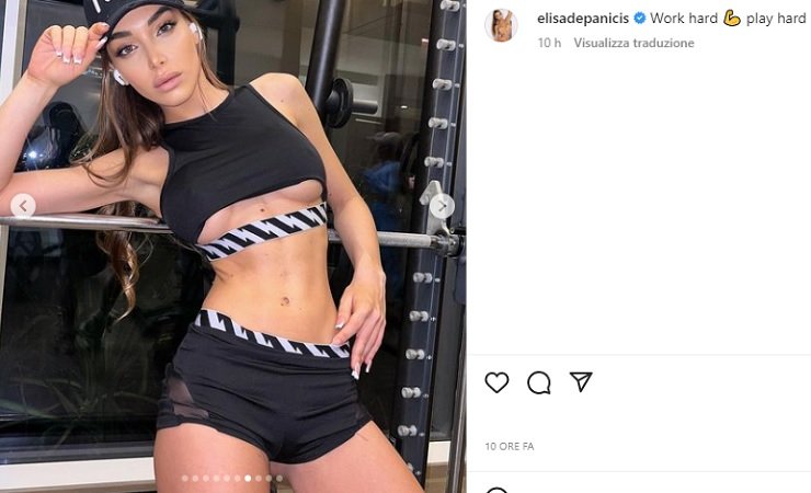 Anche il set di scatti pubblicato nella serata di ieri ha subito spaccato Instagram, in palestra con un attillatissimo e striminzito outfit sportivo ha fatto perdere la testa a chiunque. I pantaloncini sono cortissimi e mettono in risalto le sue splendide forme, sopra il top è proprio minuscolo e le lascia scoperto parte del suo ‘davanzale’ mozzafiato. Inevitabilmente l’occhio dei fan è caduto subito lì, sulle sue forme da paura, con la sua assurda bellezza e sensualità Elisa De Panicis anche questa volta ha conquistato tutti.