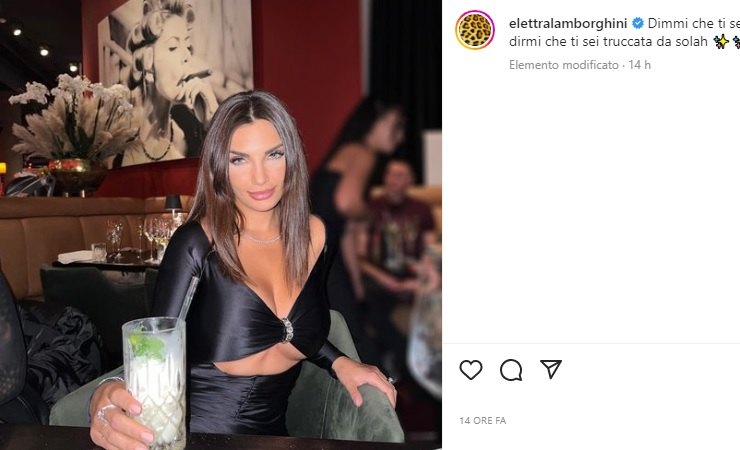 Elettra Lamborghini ha steso tutti anche ieri sera mostrandosi super sensuale e bellissima mentre beve un drink in un locale. L’outfit scelto per la serata è pazzesco e mette bene in evidenza le sue spettacolari forme, la generosa scollatura lascia ben poco all’immaginazione. Gran parte del décolleté da urlo è in bella vista, il vestito non riusciva a contenerlo del tutto. Inutile dire che anche questa volta ha lasciato tutti sena fiato, il post infatti ha conquistato moltissimi consensi, la nota cantante è davvero uno schianto.