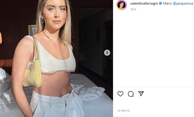 Valentina Ferragni indossa un top praticamente invisibile, questo infatti è talmente corto che non riesce a coprire del tutto il décolleté, qualcosa esce fuori. Il piccante dettaglio ha subito infuocato il web, non appena i fan l’hanno notato hanno perso totalmente la testa. Questi non riuscivano più a toglierle gli occhi di dosso, davanti a così tanta bellezza e sensualità non hanno capito più nulla. La sorella della più nota Chiara Ferragni è un vero spettacolo, anche questa volta ha steso tutti coloro che la seguono e la amano.