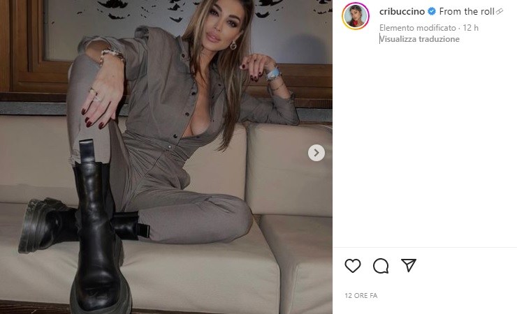 Anche il post pubblicato ieri sera ha steso chiunque, in posa sul divano con un’espressione travolgente e ammaliante ha conquistato il web. La tuta intera che indossa è molto aderente e sopra resta sbottonata, il reggiseno è assente e si intravedere parte delle sue ‘bombe’ pazzesche. Inevitabilmente l’occhio dei fan è caduto subito lì, questi non riuscivano più a smettere di ammirarla, Cristina Buccino è favolosa.